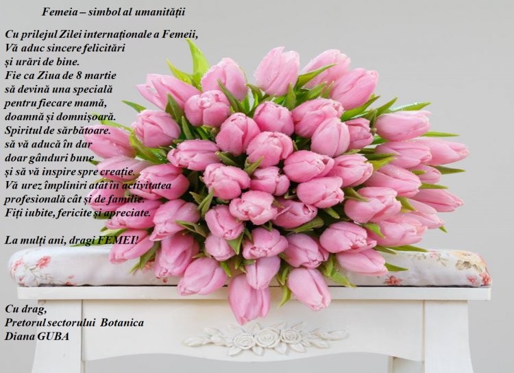 Mesajul Pretorului sectorului Botanica dna Diana GUBA cu prilejul Zilei Internaționale a Femeii.